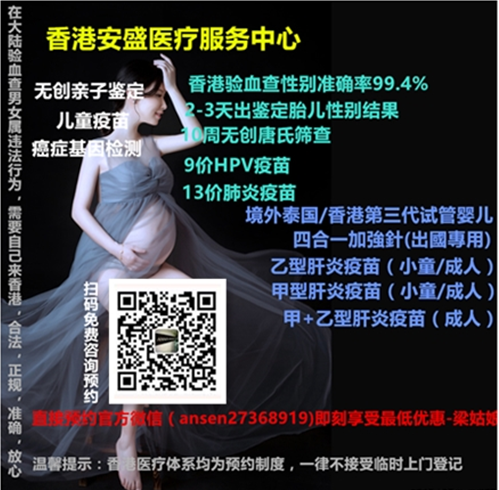 若刪或者打不開(kāi)請(qǐng)點(diǎn)快照*香港安盛醫(yī)療中心24小時(shí)免費(fèi)咨詢(xún),熱線(xiàn): 00852-27368366 直接預(yù)約官方微信(ansen27368919)即刻享受最低優(yōu)惠-梁姑娘-*香港化驗(yàn)所做DNA鑒定胎兒性別, 安全-快速-準(zhǔn)確-無(wú)創(chuàng),1-2天可出鑒定結(jié)果,詳細(xì)流程,歡迎來(lái)電咨詢(xún)預(yù)約! 其它項(xiàng)目:香港無(wú)創(chuàng)親子鑒定、10周無(wú)創(chuàng)唐氏篩查、13價(jià)肺炎疫苗注射、兒童疫苗注射、9價(jià)HPV疫苗注射、試管嬰兒、癌癥基因檢測(cè)…(在大陸驗(yàn)血查男女屬違法行為,需要自己來(lái)香港,合法,正規(guī),準(zhǔn)確,放心)。